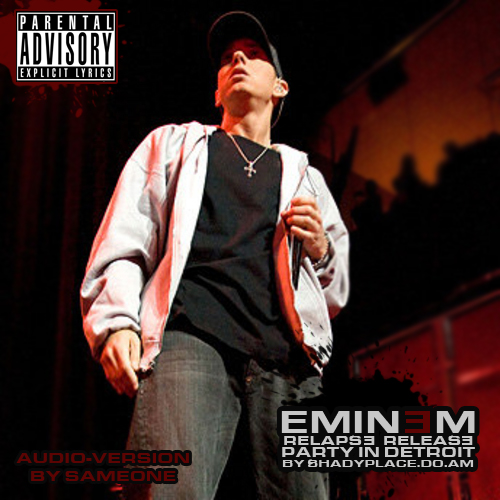 Исполнители: Eminem Альбом: Relapse Release Party in Detroit Год: 2009 Стиль: Live / Bootleg Жанр: Rap Формат: MPEG Layer 3 (mp3) Битрейт: 320 kbps Кол-во композиций: 8 Размер: 60,3 Mb 01. 3 AM 02. Hello 03. Insane 04. Underground 05. We Made You 06. Beautiful 07. Crack A Bottle 08. Lose Yourself Снял аудио с видео 1280*720, так что качество от исходников, порезал по трекам. Вскоре последуют такие аудио концерты, как Live In New York City и Anger Management, но это уже более глобальные проекты, и на них придется убить немало времени. Спасибо всем, кто оценит мои старания положительно (: Мир! :DСсылка: